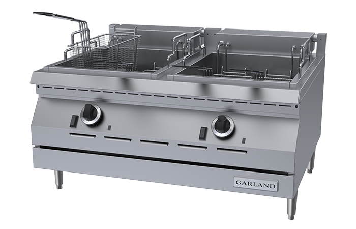 Garland Designer Series fryers deliver crisp, consistent results even during the busiest service periods. Designed for flexibility, they can be used as a free-standing unit or banked with other Designer Series equipment to create a seamless cooking line. A removable stainless steel tank with a 17 lb fat capacity supports efficient frying and simplifies cleaning, while twin fryer baskets allow operators to cook multiple batches at once to keep service moving. Snap action thermostat controls maintain reliable temperatures, helping kitchens produce golden fries and perfectly fried proteins with dependable quality every time. Available in a 15" wide single tank or 30" wide double tank model.