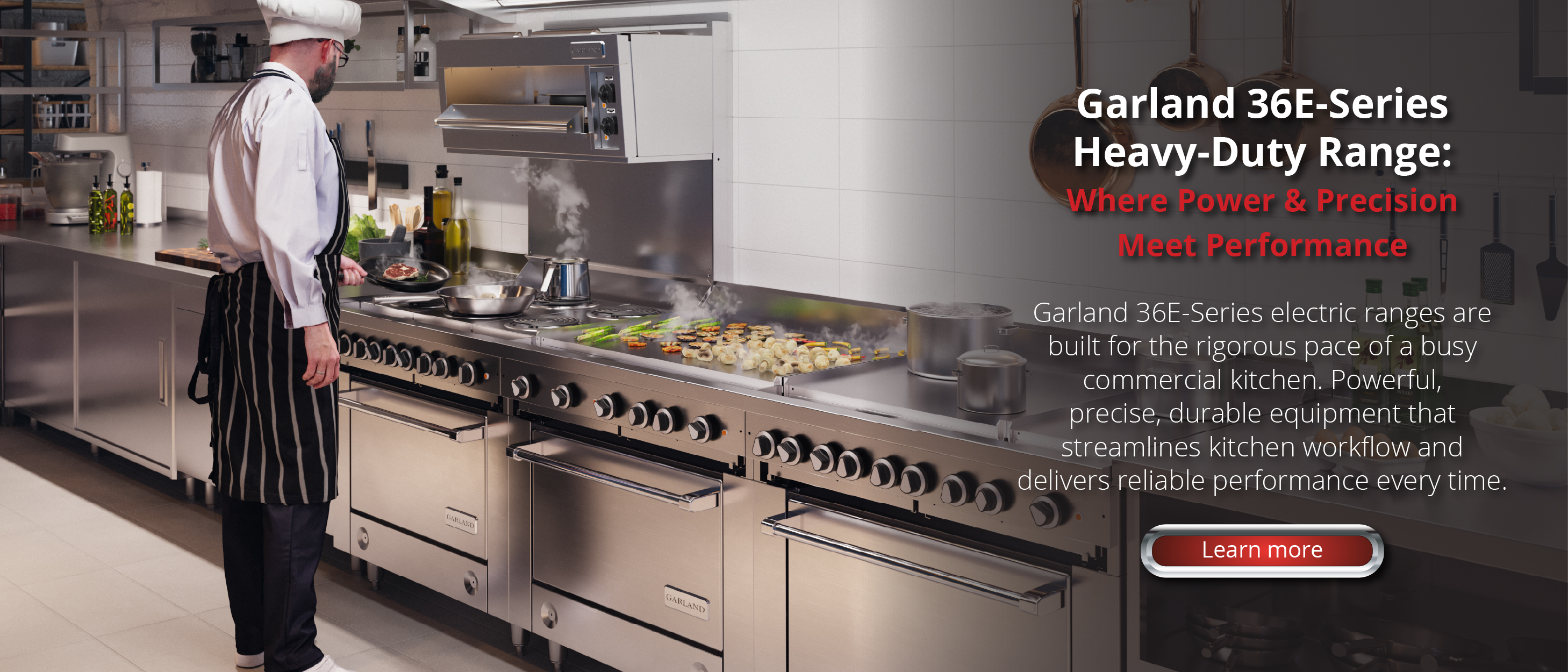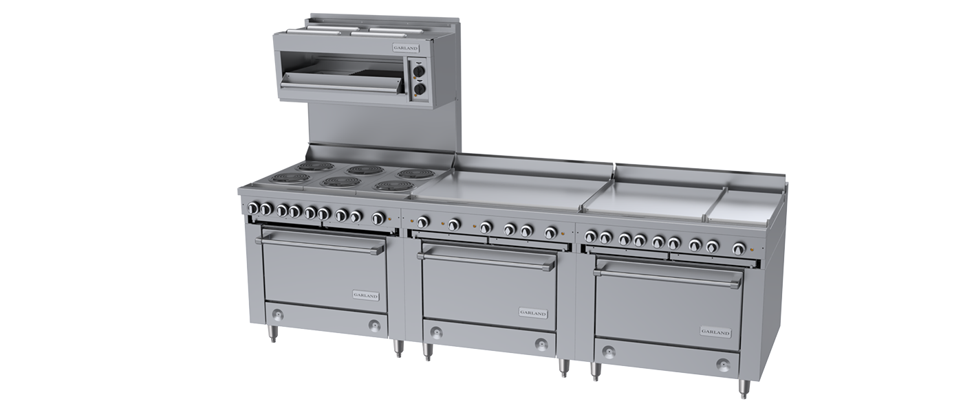 Garland 36E-Series electric ranges are built for the rigorous pace of a busy commercial kitchen. With models that include multiple elements, boiling plates, all-purpose sections, griddles and integrated ovens or storage bases, you get cooking versatility for everything from stocks, sauces and griddle work, to baking and roasting. It’s powerful, precise, durable equipment that streamlines kitchen workflow and delivers reliable performance every time.