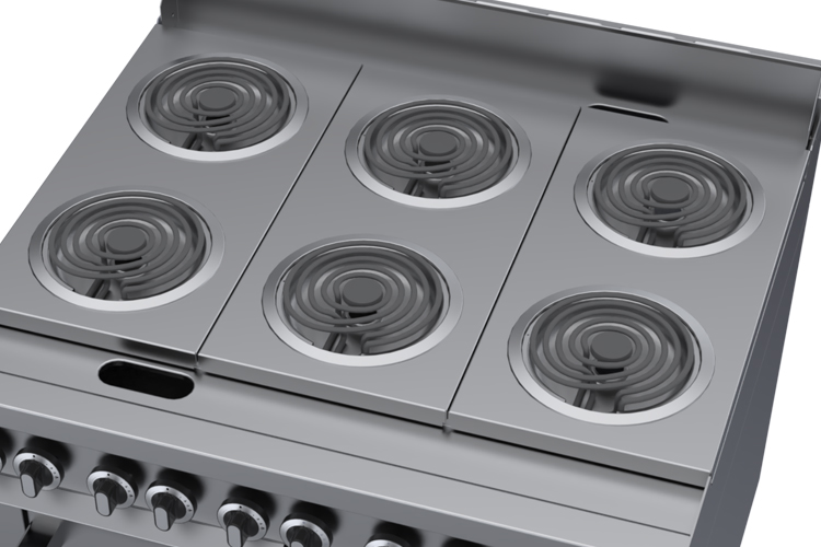 A 290°F (143°C) to 650°F (343°C) all-purpose hot top with thermostatic control for cooking flexibility.