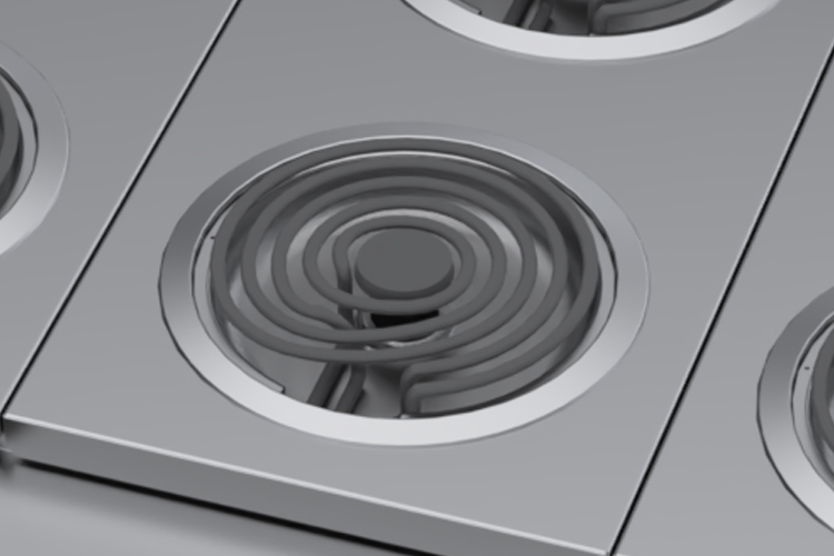 Powerful 8in (203mm), 2.1 kW total tubular electric elements give with low-med-high heat control. The tubular design spreads heat uniformly across the cooking surface, comes to temperature quickly, and bounces back fast when a pan is added or removed.