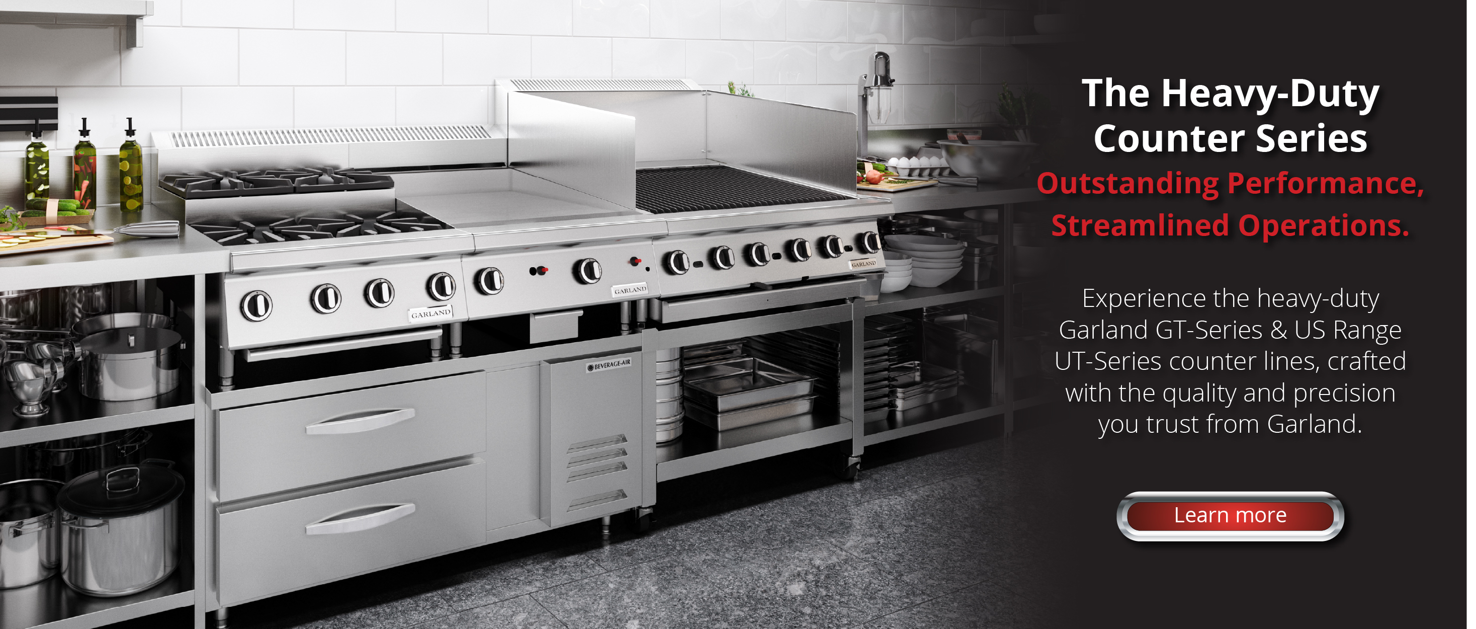 Experience the heavy-duty Garland GT-Series & US Range UT-Series counter lines, crafted with the quality and precision you trust from Garland. This series combines space-saving convenience with full-sized power and performance. Whether you’re optimizing your kitchen setup or adapting to changing needs, the flexible design makes arranging and rearranging your lineup effortless.