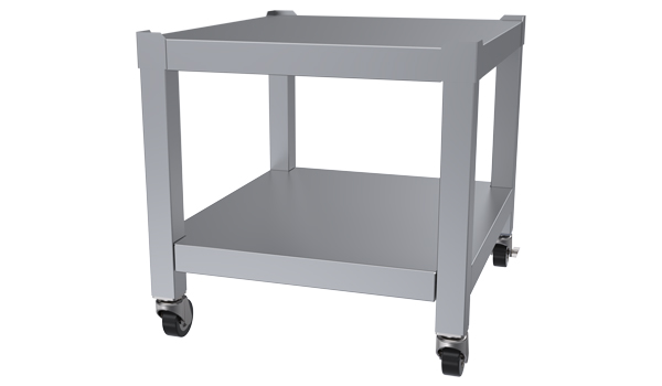 A stainless steel stand with sturdy lower shelf, available with or without swivel casters with front-locking brakes for 24", 36", 48", and 60" HE-Series broilers helps optimize space and adds extra storage.