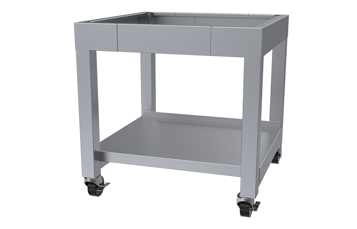 The entire Designer Series line can be paired with optional custom-fit stands that position equipment at an ergonomic working height. This helps create a cohesive counter line that improves workflow and operator comfort. The stainless steel construction features seamless welded square tube legs, and sturdy intermediate shelf. Available with or without front-locking swivel casters.