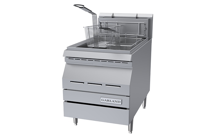 Garland Gas Designer Series fryers deliver crisp, consistent results even during the busiest service periods. Designed for flexibility, they can be used as a free-standing unit or banked with other Designer Series equipment to create a seamless cooking line. A removable stainless steel tank with a 15 lb fat capacity supports efficient frying and simplifies cleaning, while twin fryer baskets allow operators to cook multiple batches at once to keep service moving. Snap-action thermostat controls, and 45,000 BTU burner with Piezo spark ignition, maintain reliable temperatures, helping kitchens produce golden fries and perfectly fried proteins with dependable quality every time.